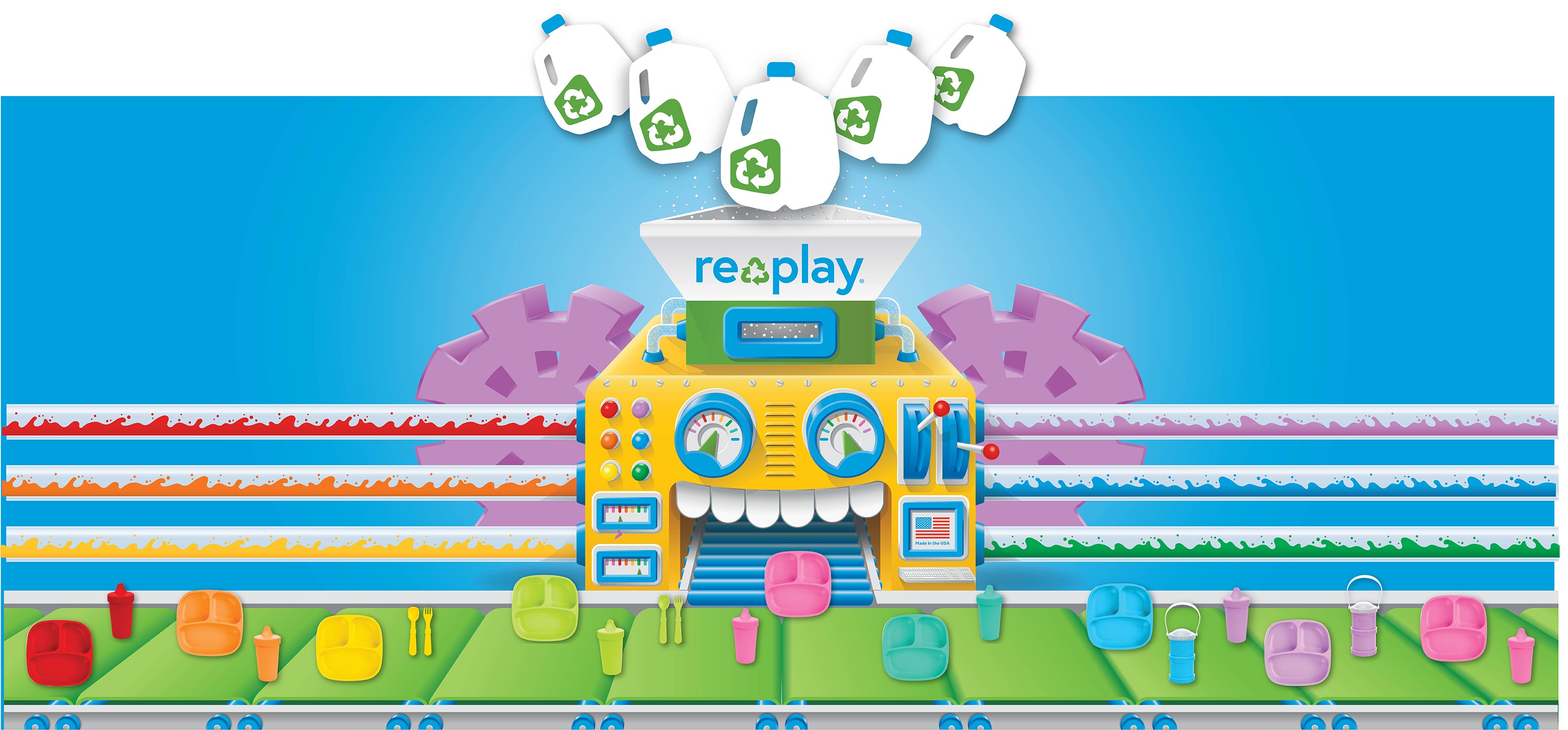Bright, bold and bursting with fun. Make mealtime a colorful adventure with Re-Play—all while saving the environment. Made from recycled materials, Re-Play products are not only designed with children in mind, they are sustainable, easy to clean, durable, and safe!