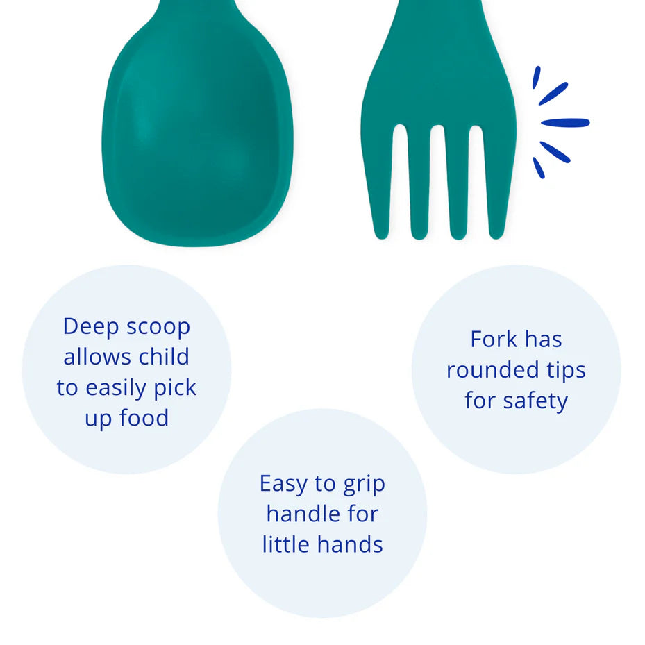 - Toddler Utensils: Designed with deep scoops, rounded tips, and pudgy handles for easy gripping.